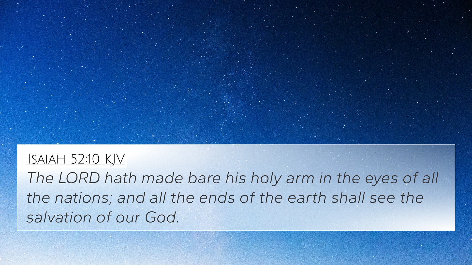 Below, you will find carefully selected verses that echo the themes and teachings related to Isaiah 52:10 KJV. Click on any image to explore detailed analyses of related Bible verses and uncover deeper theological insights.