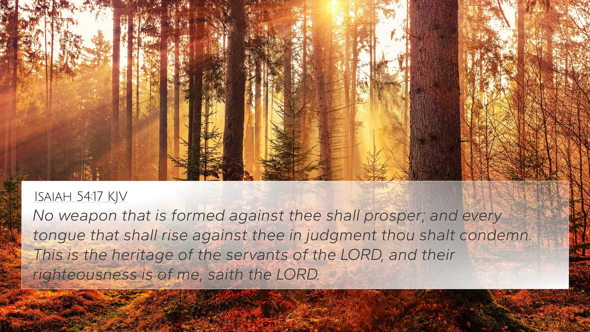 Below, you will find carefully selected verses that echo the themes and teachings related to Isaiah 54:17 KJV. Click on any image to explore detailed analyses of related Bible verses and uncover deeper theological insights.