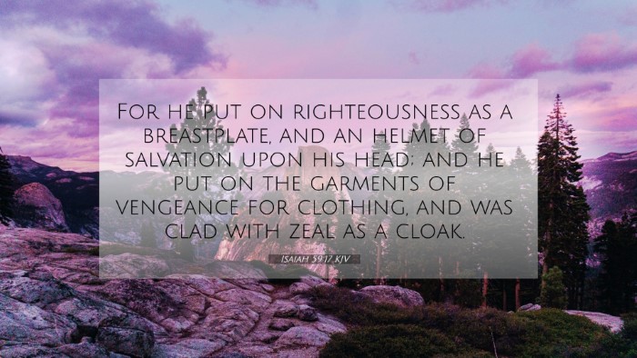 Below, you will find carefully selected verses that echo the themes and teachings related to Isaiah 59:17 KJV. Click on any image to explore detailed analyses of related Bible verses and uncover deeper theological insights.