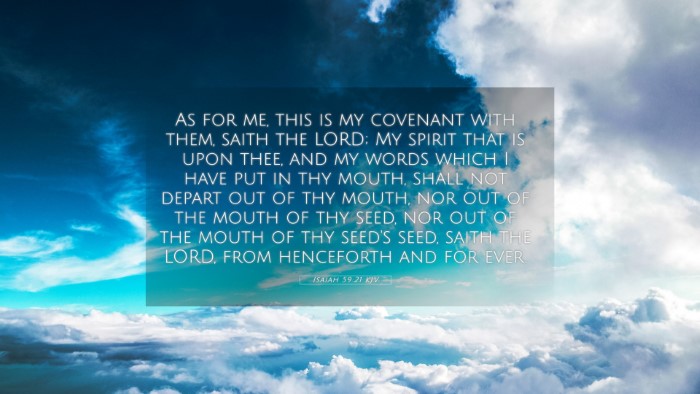 Below, you will find carefully selected verses that echo the themes and teachings related to Isaiah 59:21 KJV. Click on any image to explore detailed analyses of related Bible verses and uncover deeper theological insights.