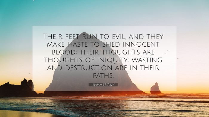Below, you will find carefully selected verses that echo the themes and teachings related to Isaiah 59:7 KJV. Click on any image to explore detailed analyses of related Bible verses and uncover deeper theological insights.