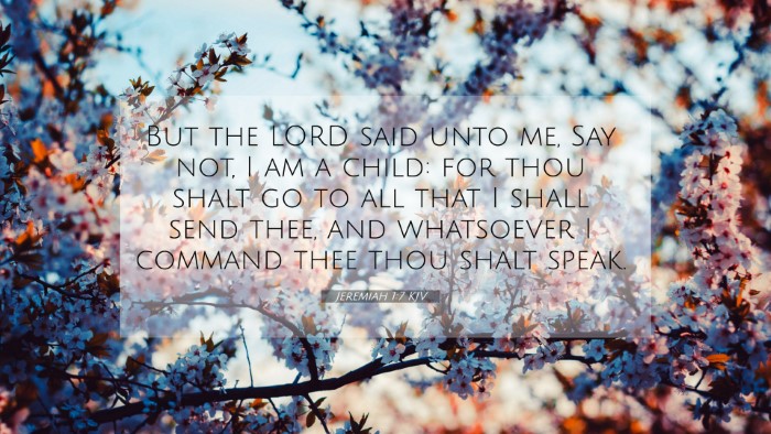 Below, you will find carefully selected verses that echo the themes and teachings related to Jeremiah 1:7 KJV. Click on any image to explore detailed analyses of related Bible verses and uncover deeper theological insights.