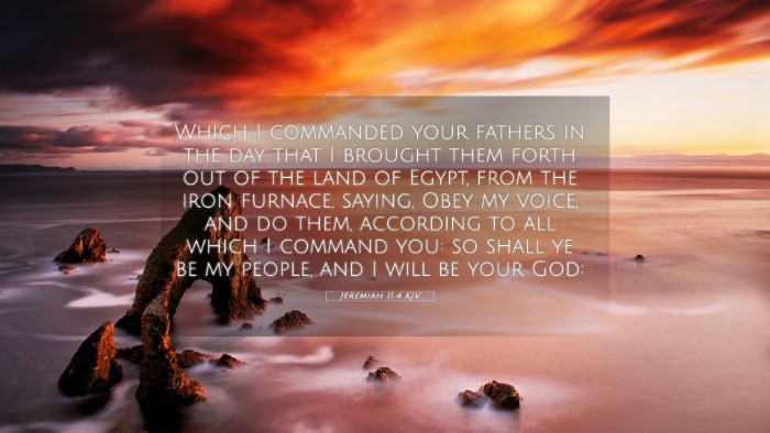 Below, you will find carefully selected verses that echo the themes and teachings related to Jeremiah 11:4 KJV. Click on any image to explore detailed analyses of related Bible verses and uncover deeper theological insights.