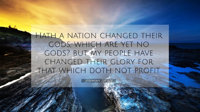 Jeremiah 2:11 serves as a poignant reminder of the need for fidelity in our relationship with God. Engaging with this verse through various commentaries, thematic connections, and cross-references enhances our comprehension and underscores the timeless truth of the Scriptures that call us back to the heart of worship.