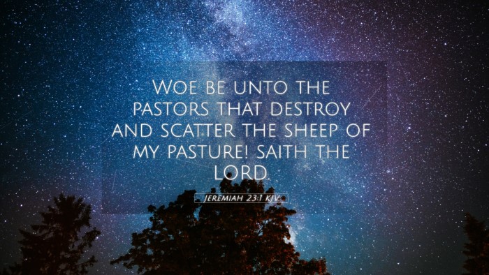 Below, you will find carefully selected verses that echo the themes and teachings related to Jeremiah 23:1 KJV. Click on any image to explore detailed analyses of related Bible verses and uncover deeper theological insights.
