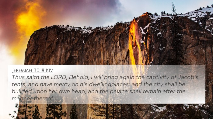 Thus saith the LORD; Behold, I will bring again the captivity of Jacob's tents, and have mercy on his dwellingplaces; and the city shall be builded upon her own heap, and the palace shall remain after the manner thereof.