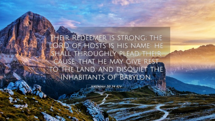 Below, you will find carefully selected verses that echo the themes and teachings related to Jeremiah 50:34 KJV. Click on any image to explore detailed analyses of related Bible verses and uncover deeper theological insights.