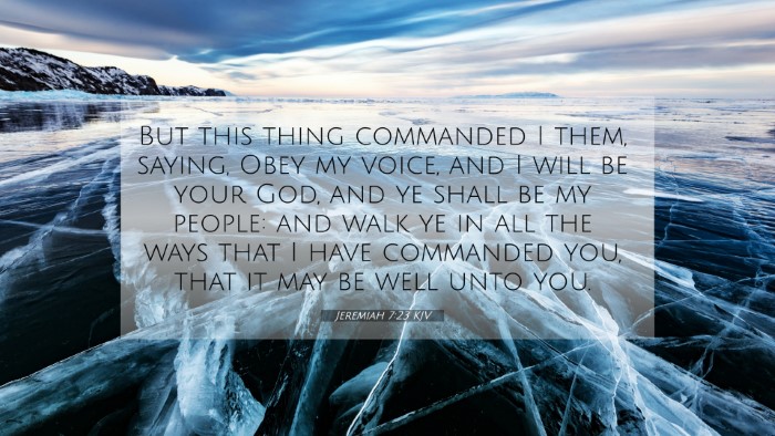 Below, you will find carefully selected verses that echo the themes and teachings related to Jeremiah 7:23 KJV. Click on any image to explore detailed analyses of related Bible verses and uncover deeper theological insights.