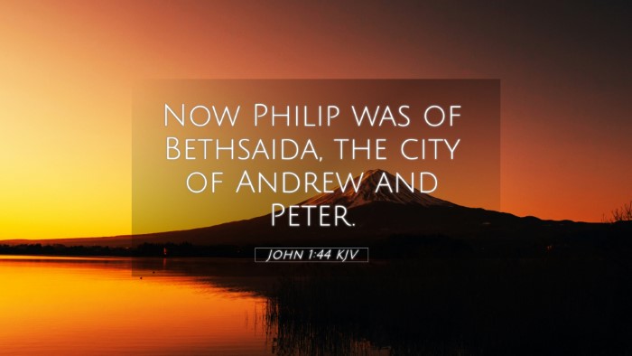 The verse John 1:44 serves as a vital link in the narrative of the Gospel of John, connecting Philip to the larger body of apostles through geographical and personal relationships. The cross-references illustrate how this seemingly simple introduction sets the stage for both personal and collective discipleship.