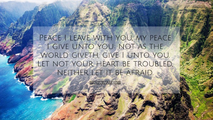 Below, you will find carefully selected verses that echo the themes and teachings related to John 14:27 KJV. Click on any image to explore detailed analyses of related Bible verses and uncover deeper theological insights.