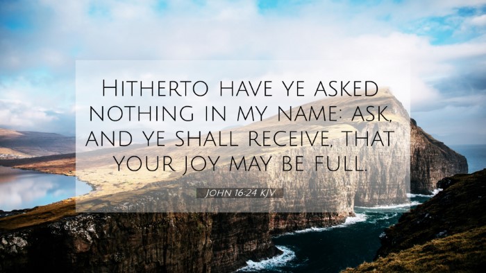 Below, you will find carefully selected verses that echo the themes and teachings related to John 16:24 KJV. Click on any image to explore detailed analyses of related Bible verses and uncover deeper theological insights.