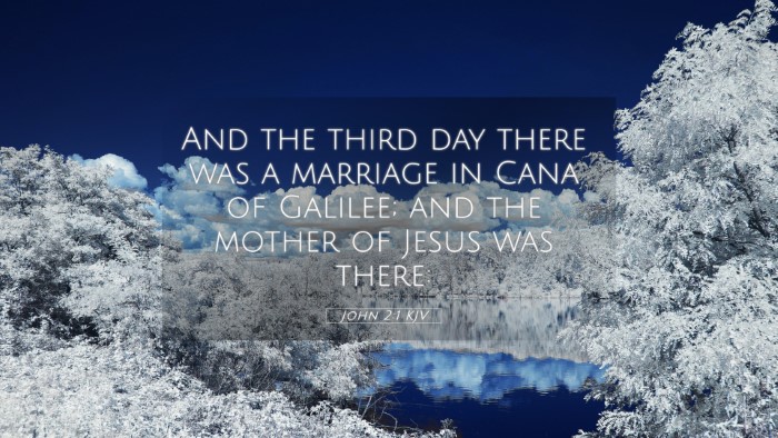 Barnes elaborates on the phrase "the third day," suggesting it denotes a period of significant events leading to this moment. It ties back to Jesus' calling of His first disciples and serves as a pivotal moment for revealing His glory.