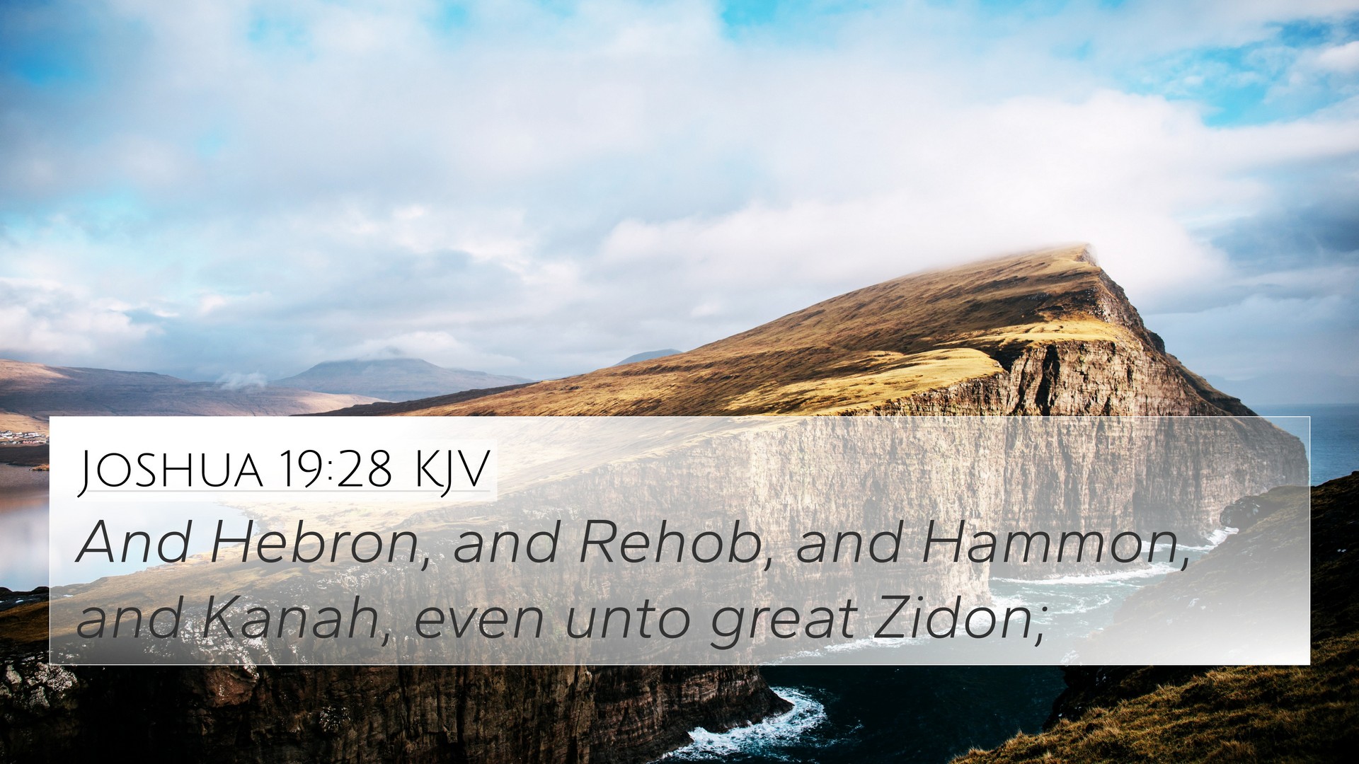 Verse Reference: Joshua 19:28 states: "And Hebron, and Rehob, and Zor, and Kileah, and the region of the city of the salt; and Engedi, and the cities of the South." This verse describes part of the territory allotted to the tribe of Judah during the division of the land of Canaan.