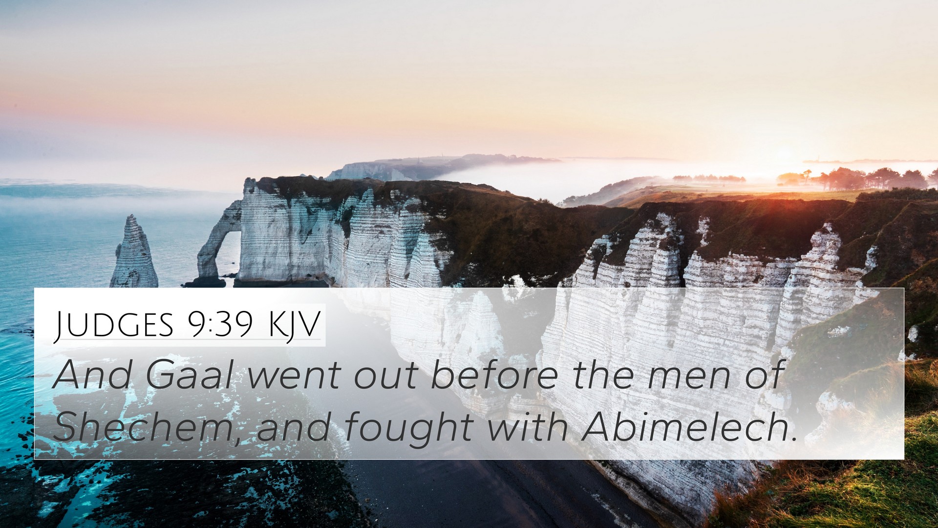 Judges 9:39 states: "Then Gaal went out before the men of Shechem, and fought with Abimelech." This brief statement encapsulates a significant clash in the narrative of the judges, where Gaal emerges as a challenger against Abimelech, who was instated through treachery.