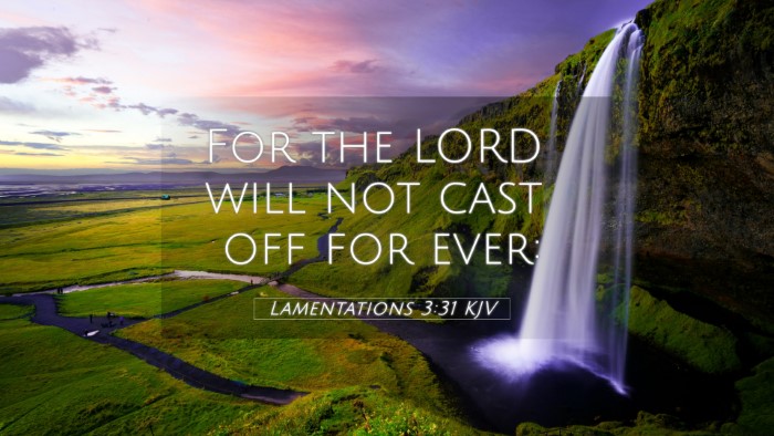 Lamentations 3:31 reveals a rich tapestry of God’s character as merciful and just. By engaging with this verse and exploring its connections through a comparative Bible verse analysis, one can derive a deeper understanding of the inter-Biblical dialogue that emphasizes hope, justice, and divine mercy.