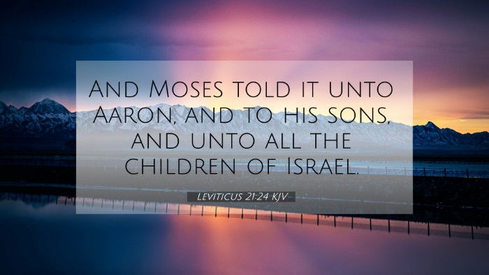 Leviticus 21:24 captures a significant moment in the life of Israel, focusing on obedience and commitment to God's commandments. This verse reflects the covenant relationship between God and His people, emphasizing the importance of following divine instructions and the role of offerings as a response to God's laws.