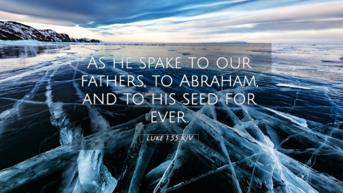 Luke 1:55 serves not only as a pivotal verse within the context of the Nativity narrative but is also rich with theological significance, connecting believers to the deep roots of God's faithfulness. Understanding this verse in relation to others enhances our comprehension of God's overarching plan for redemption and the continuity of His promises throughout Biblical history.