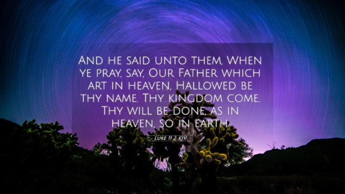 Luke 11:2 serves as a powerful reminder of the importance of prayer that honors God, seeks His kingdom, and fosters a relationship grounded in reverence. By engaging with this verse and its connections to other scripture, believers can enrich their understanding of prayer and its place in the Christian faith.