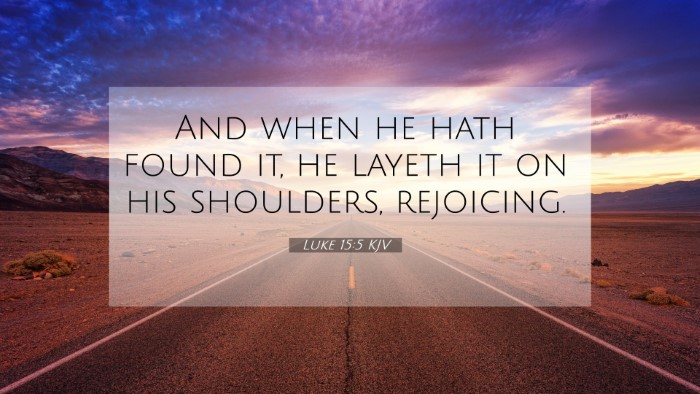 Below, you will find carefully selected verses that echo the themes and teachings related to Luke 15:5 KJV. Click on any image to explore detailed analyses of related Bible verses and uncover deeper theological insights.