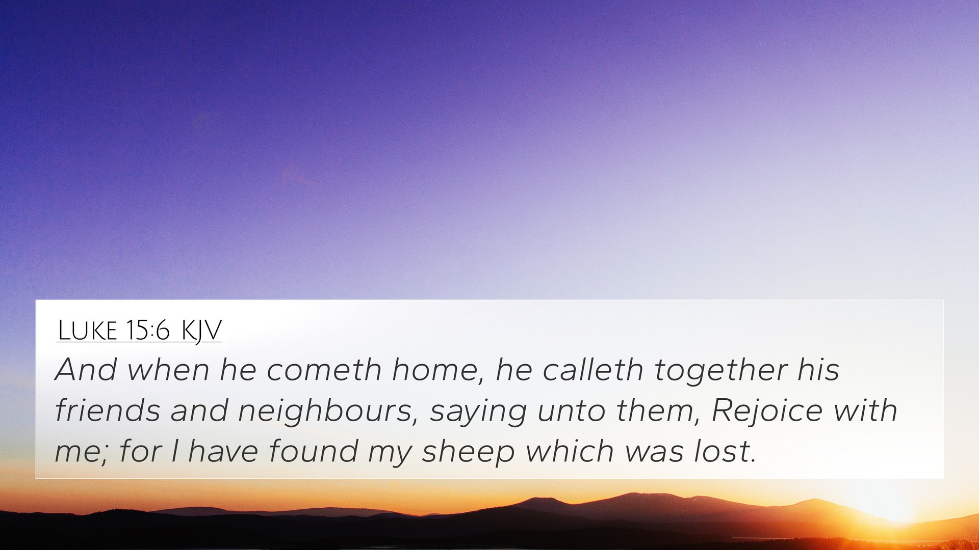 Below, you will find carefully selected verses that echo the themes and teachings related to Luke 15:6 KJV. Click on any image to explore detailed analyses of related Bible verses and uncover deeper theological insights.