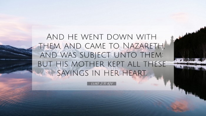 Luke 2:51 offers crucial insights into the life of Jesus, illustrating His obedience to His earthly parents while foreshadowing His divine mission. This verse serves as a bridge in understanding the human experience of the Savior and provides a model of submission and respect toward authority, resonating across both the Old and New Testaments.