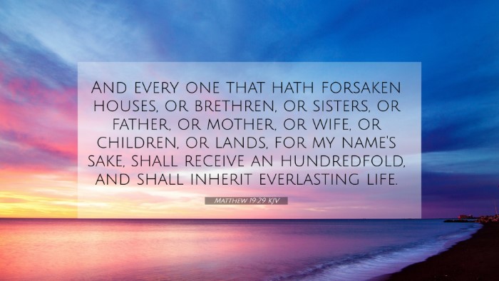 Below, you will find carefully selected verses that echo the themes and teachings related to Matthew 19:29 KJV. Click on any image to explore detailed analyses of related Bible verses and uncover deeper theological insights.