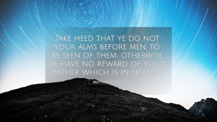 This verse serves as a foundational principle in Jesus' Sermon on the Mount, addressing the sincere practice of righteousness. The key elements embedded within this verse focus on motives, actions, and divine reward.
