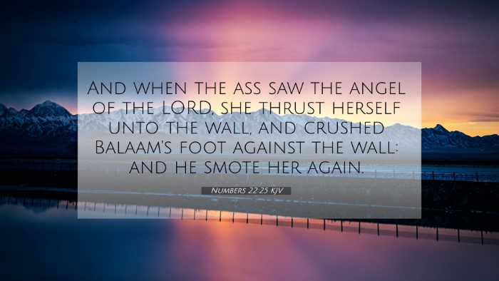 Numbers 22:25 recounts a significant moment in the narrative of Balaam and his interactions with his donkey. The verse states: