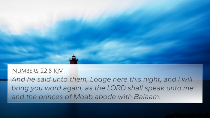 - Matthew Henry: Balaam's response indicates his attempt to connect with God. His initial approach reflects a mixture of awareness of God's power and an eagerness to fulfill Balak’s desires for his own gain. Here, it shows the tension between divine authority and human manipulation.