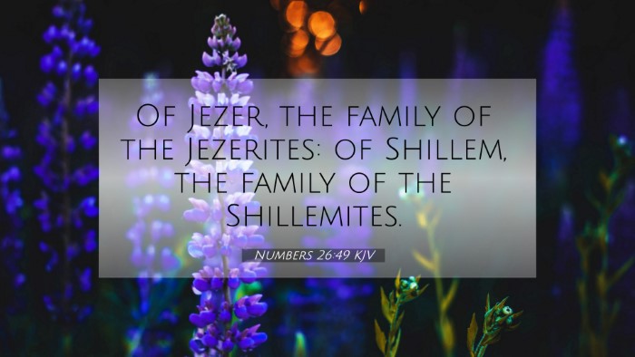 Numbers 26:49 provides a significant insight into the heritage of the tribes of Israel and their divine purpose. Through the commentaries of Matthew Henry, Albert Barnes, and Adam Clarke, along with cross-referencing with other biblical texts, we see a comprehensive understanding of God's promises and His faithful guidance throughout history. This verse, among many others, serves as a reminder of the interconnectedness of Scripture and the importance of recognizing the broader narrative of God’s plan for humanity.