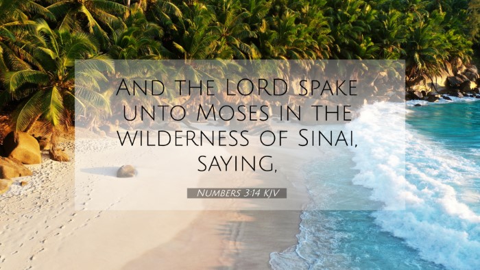 The verse from Numbers 3:14 is pivotal in the context of Israel’s journey through the wilderness. Here, God speaks to Moses, emphasizing His guidance during their nomadic phase of existence. This verse marks a significant moment and introduction to God’s detailed instructions about the Levites and their roles in the sanctuary.