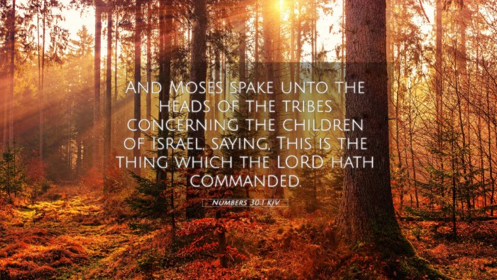 Numbers 30:1 presents important principles regarding vows and the authority of leaders in guiding their community in adherence to God's laws. Let us summarize its meaning using insights from various public domain commentaries, including those by Matthew Henry, Albert Barnes, and Adam Clarke.