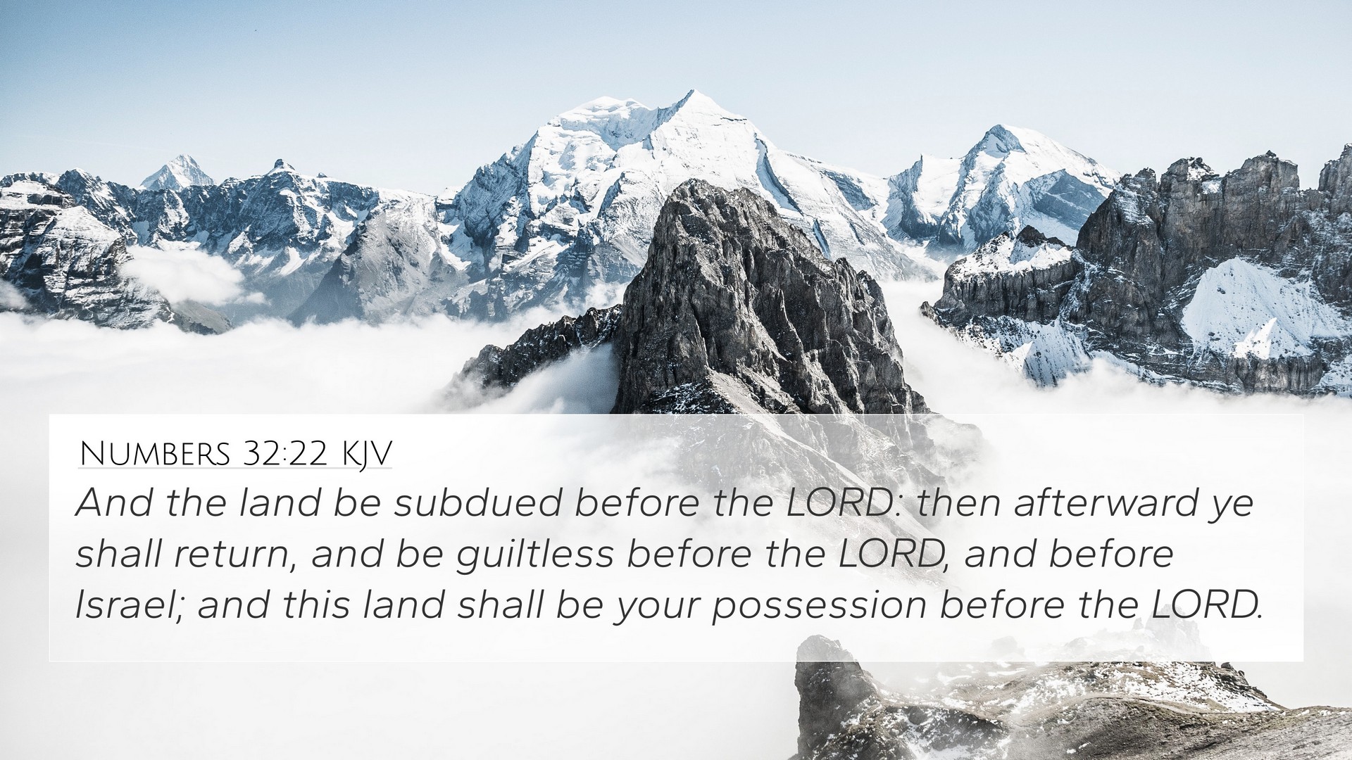 Below, you will find carefully selected verses that echo the themes and teachings related to Numbers 32:22 KJV. Click on any image to explore detailed analyses of related Bible verses and uncover deeper theological insights.