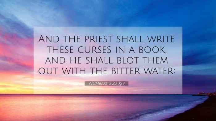Numbers 5:23 not only serves as a historical and ritualistic passage but opens a dialogue about God's character in terms of justice, mercy, and the sanctity of marriage. By exploring thematic connections and utilizing effective cross-referencing tools, believers can gain a richer understanding of how to navigate the complexities of faith, obedience, and the serious nature of transgressions against God's design.