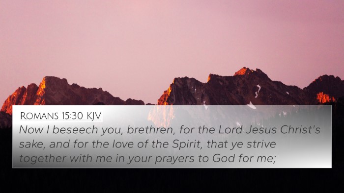 Now I beseech you, brethren, for the Lord Jesus Christ's sake, and for the love of the Spirit, that ye strive together with me in your prayers to God for me;