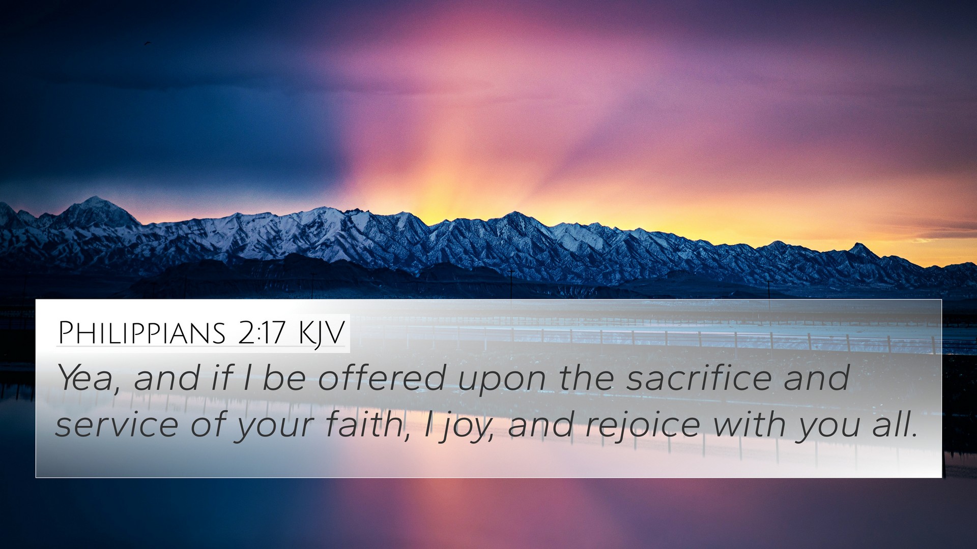 Below, you will find carefully selected verses that echo the themes and teachings related to Philippians 2:17 KJV. Click on any image to explore detailed analyses of related Bible verses and uncover deeper theological insights.