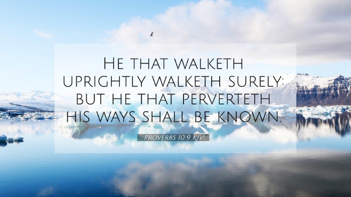 Proverbs 10:9 emphasizes the contrast between two pathways of life—one marked by integrity and the other by deceit. Commentaries by Matthew Henry, Albert Barnes, and Adam Clarke highlight several key points: