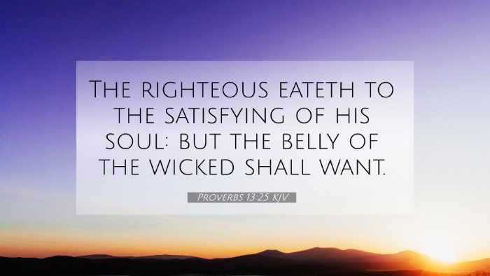 Proverbs 13:25 (KJV): "The righteous eateth to the satisfying of his soul: but the belly of the wicked shall want."