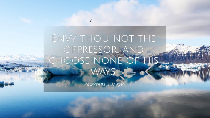 The exploration of Proverbs 3:31 helps unveil themes that are recurrent across the Bible, such as the importance of ethical living and building communities characterized by love rather than strife. The guidelines found in the scriptural references suggest a call to transcend negative influences present in society.
