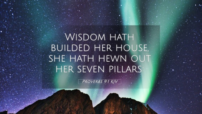 Proverbs 9:1 serves as a vital springboard for exploring the nature of wisdom throughout Scripture. Through the insights gathered from public domain commentaries and cross-referenced verses, believers can appreciate the depth of wisdom as the cornerstone of a meaningful life.