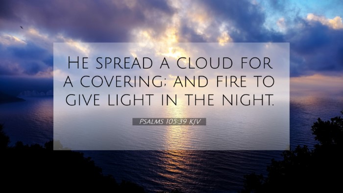 Psalms 105:39 illustrates God’s omnipresent care through the imagery of cloud and fire, serving as a lasting reminder of His guiding and protective nature. Understanding this verse in the light of related scriptures can enhance the believer’s faith and comprehension of God's plan throughout history. By exploring the connections between Bible verses through effective cross-referencing, one can gain deeper insights into the divine narrative woven throughout Scripture.