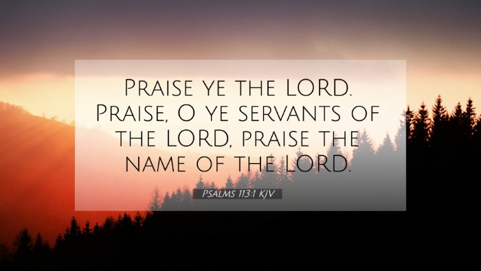 Psalms 113:1 not only serves as a verse of worship but also challenges believers to remind themselves of the value of praising God in all circumstances. This can be used as a foundation for personal or communal worship practices.
