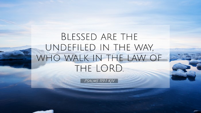 Psalms 119:1 encapsulates significant Biblical themes, such as the importance of divine law, the nature of true happiness, and the call to purity. The connections among these verses serve as a framework for deeper understanding and study: