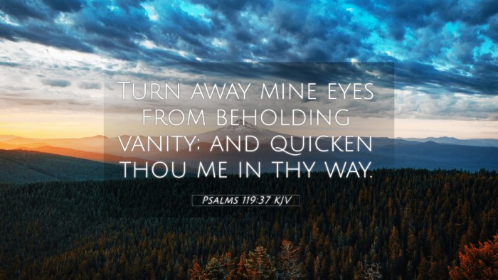Psalms 119:37 captures a universal struggle faced by believers: the need to turn away from distractions and seek personal revival through God. This verse can lead to a deeper understanding of the significance of spiritual focus, connecting it to various other scriptures that address similar concerns. By cross-referencing these themes, believers can experience a more comprehensive grasp of their faith and its practical application in their daily lives.