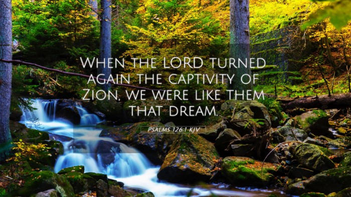 The beauty of Psalms 126:1 lies in its emotional depth and thematic richness. Reflecting on this verse can foster hope and joy in the believer's heart, reminding them of the transformative power of God’s grace. Discovering its connections to other scriptures invites a broader understanding of biblical narrative and divine faithfulness.