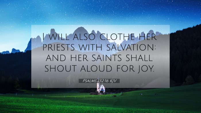 Psalms 132:16 serves as a profound reminder of the blessings of salvation that God bestows on His people, especially those who serve Him. The intertwining of joy and divinely appointed roles underscores the importance of community and worship in the life of faith. For further insight, using tools for Bible cross-referencing can enhance one's study of scripture, revealing even more connections and themes.