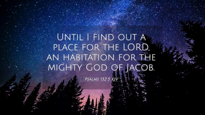 This verse resonates with numerous other passages throughout the Bible, underlining the thematic and spiritual engagement within the text. Below are cross-references that relate closely to Psalms 132:5: