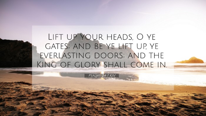 Psalms 24:7 combines rich imagery with profound theological implications. By linking the call of this psalm to other scriptures, believers can gain a greater understanding of God's invitation into relationship. Through cross-referencing, individuals are encouraged to pursue deeper insights and an enriched faith experience.