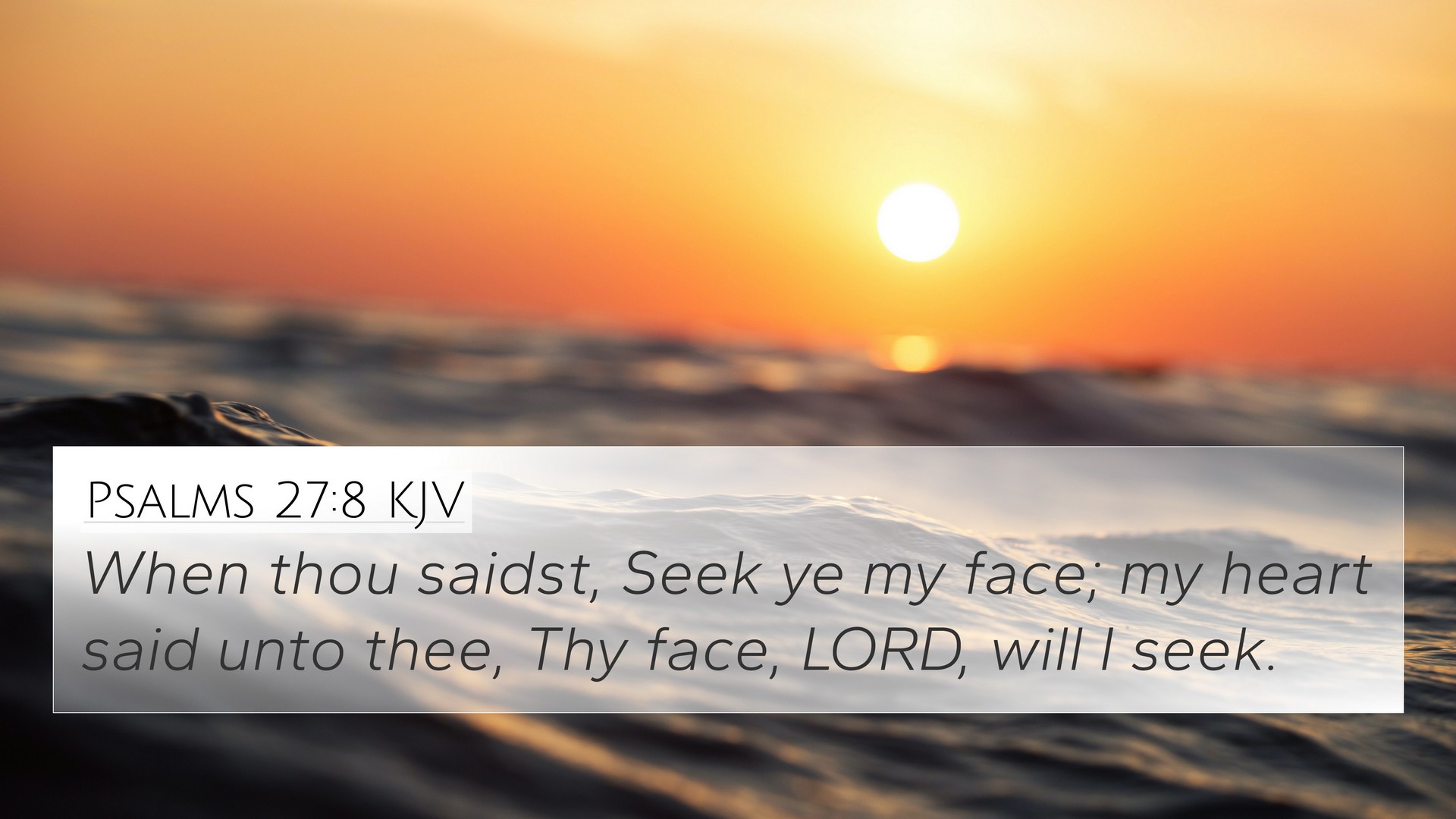 Psalms 27:8 serves as a reminder of the divine invitation extended by God to His people, calling them into a deeper relationship with Him. The heartfelt response signified in the verse illustrates the desired relationship that God seeks to cultivate. By utilizing tools for Bible cross-referencing, such as concordances and study guides, believers can explore the interconnectedness of Scripture and deepen their understanding of the themes illustrated in this verse.