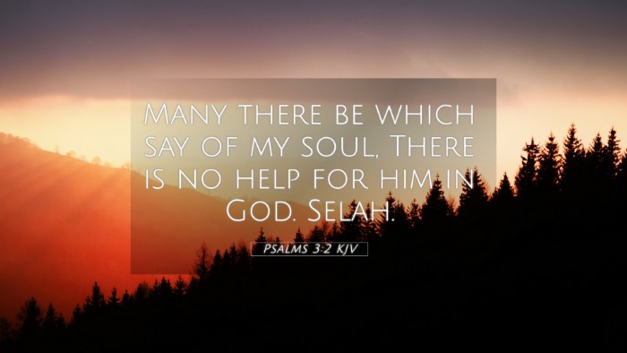 Psalms 3:2 serves as a poignant reminder of the challenges faced by believers. It illustrates the reality of feeling abandoned while simultaneously encouraging a steadfast faith in God’s unfailing assistance. By understanding the context through cross-references and commentaries, we can cultivate a deeper trust in God that transcends our immediate circumstances.
